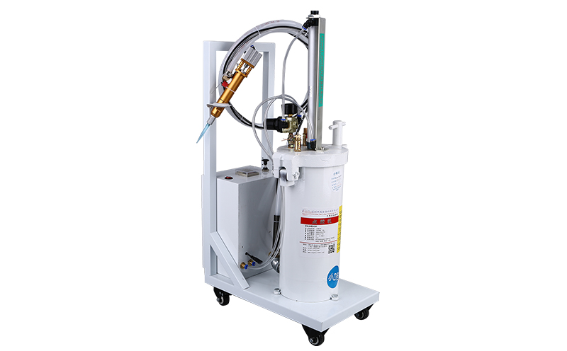 F:該設備配有兩個壓力罐,可用于同時制造兩桶膠水。兩個壓力罐可分別調節氣壓和膠水輸出。沒有膠水時,它可以自動切換到另一桶膠水。比兩個單桶分配器更多的勞動力和購買成本。